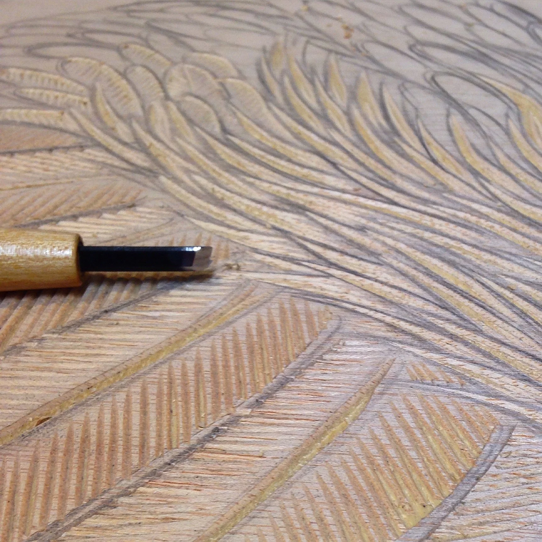 When I was living in NYC people would come to the studio to purchase work, primarily prints. They would often express interest in buying my woodblocks that I would print from. Around 2002 I started carving blocks, then painting and finishing them as pieces. In addition I started making collage print panels and 3D pieces covered in prints like masks. All of the carvings below are done by hand with a V-notch chisel on wood.